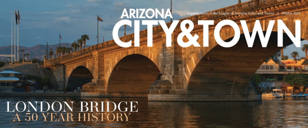 The winter edition of Arizona City & Town, focusing on the 50thanniversary of the London Bridge in Lake Havasu City is now available. Copies have been mailed to all cities and towns. To view a copy of the magazine, click here.