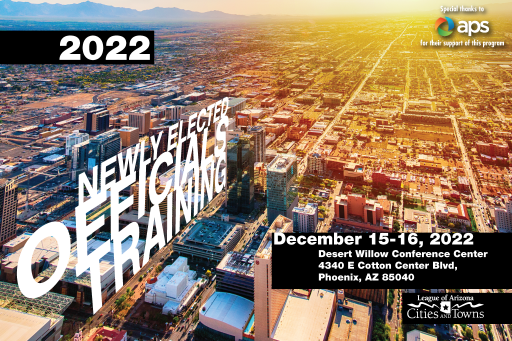 The League of Arizona Cities and Towns is pleased to announce the 22nd Newly Elected Officials Program. This year, the program will be held December 15-16 at the Desert Willow Conference Center.