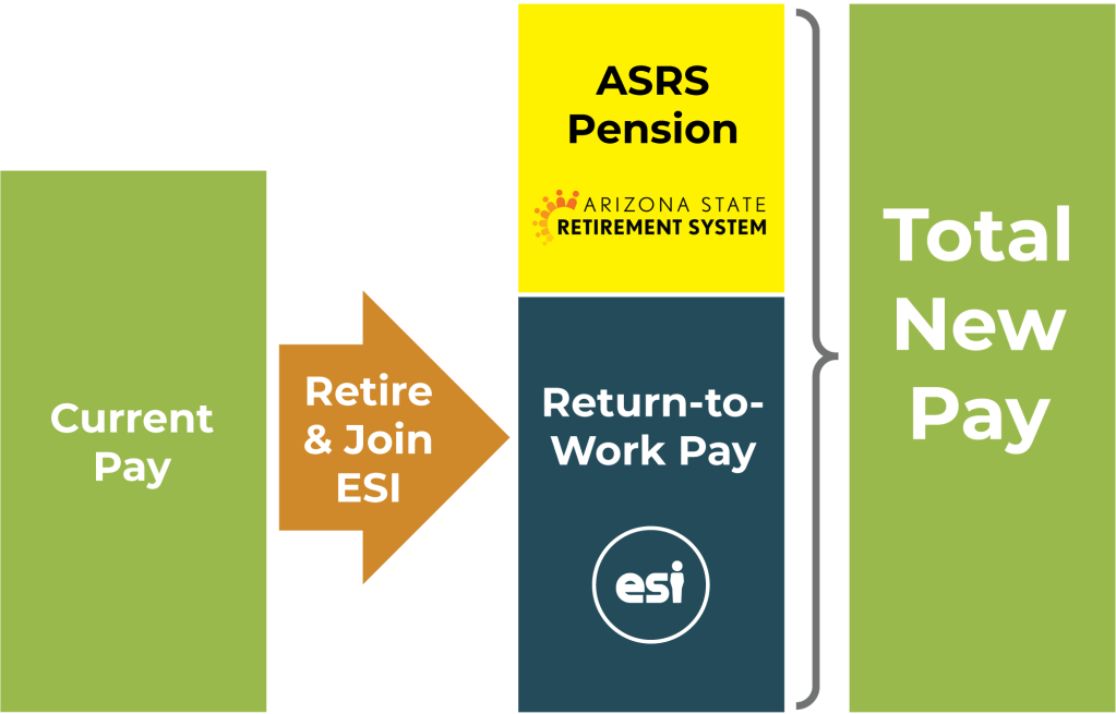 ESI’s return-to-work program allows employees to retire from the ASRS and return-to-work, continuing in their same position without any restrictions, while collecting their ASRS pension and a salary from ESI.